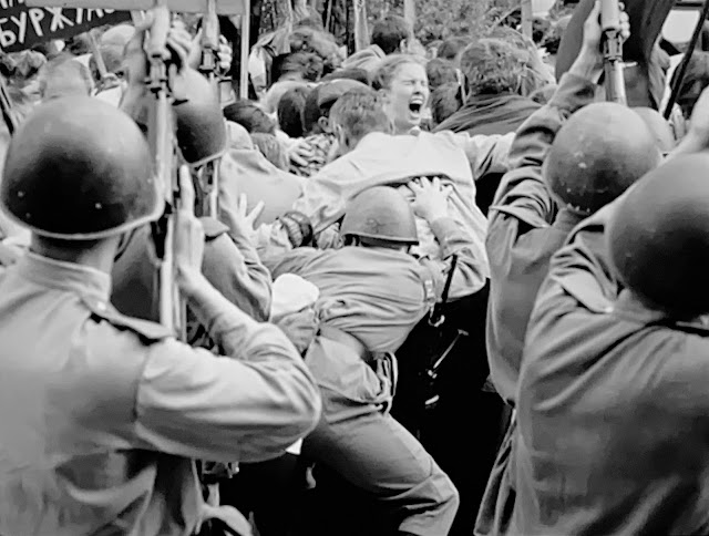 明らかに抗議デモに賛同する父と、スターリニストの娘の間に横たわる重くて、厚い壁を打ち抜けない関係の冷厳さが透けて見える。