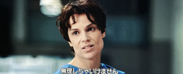 ロレンツォは、複数の管をつけて昏睡状態のミケーラを見舞う。
